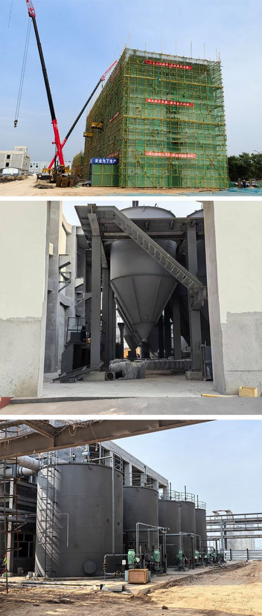 一、 硫化黑裝置總體安裝情況: 1、設(shè)備安裝情況 主體設(shè)備已安裝完成。 2、管道安裝情況 工藝管道:硫化前部、硫化、水解、尾氣已安裝完成90%。 儀表管道:硫化前部、硫化完成80%、水解安裝完成95%。 3、電氣、儀表安裝情況 硫化黑裝置配電室安裝完成80%,水解動(dòng)力、儀表電纜敷設(shè)完成,接線(xiàn)完成90%,硫化動(dòng)力、儀表電纜敷設(shè)完成,接線(xiàn)完成95%,硫化前部?jī)x表、動(dòng)力電纜正在敷設(shè)完成90%,接線(xiàn)完成30%。 二、噴霧干燥裝置 1、設(shè)備安裝情況 設(shè)備安裝完成,設(shè)備保溫已施工完成。 2、管道安裝情況 管道安裝完成95%,管道保溫已施工完成。 3、電氣、儀表安裝情況 電氣、儀表已全部安裝完成。 三、尾氣處理裝置 施工情況: 1、 設(shè)備安裝:裝置內(nèi)主要設(shè)備已安裝完成80%; 2、 工藝管道安裝:工藝管道預(yù)制焊接安裝完成60%; 3、 儀表管道:現(xiàn)場(chǎng)正在預(yù)制; 4、 電氣安裝:現(xiàn)場(chǎng)正在整理設(shè)備就地操作柜準(zhǔn)備開(kāi)始安裝; 5、 儀表安裝:未開(kāi)始安裝; 四、非標(biāo)儲(chǔ)罐 1、現(xiàn)場(chǎng)非標(biāo)儲(chǔ)罐共計(jì)24臺(tái),現(xiàn)場(chǎng)已制作焊接完成。 2、非標(biāo)儲(chǔ)罐防腐噴漆完成80%。 五、滾筒干燥混合機(jī)安裝 1、設(shè)備:主要設(shè)備已安裝就位完成。 2、 電氣:低壓配電柜已安裝就位完成,電纜橋架安裝完成,電纜鋪設(shè)完成,接線(xiàn)完成70%。